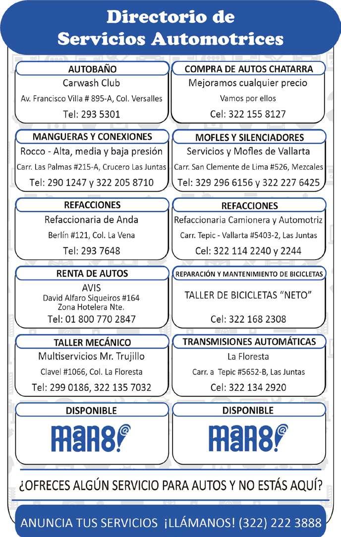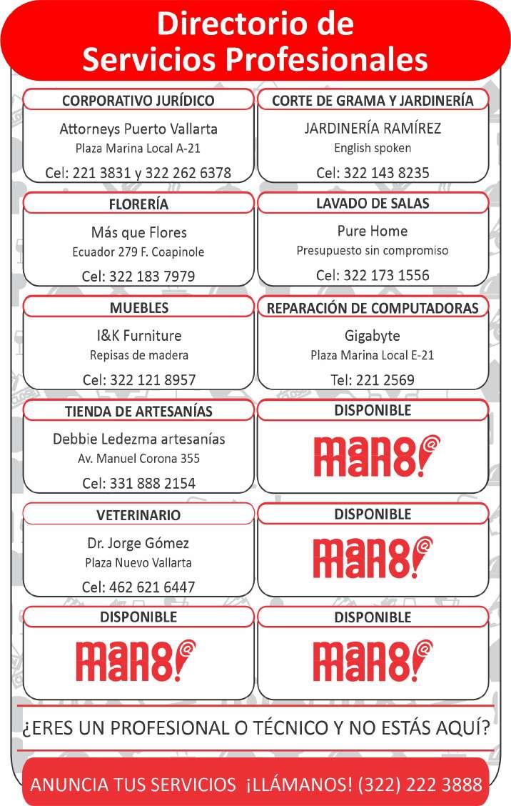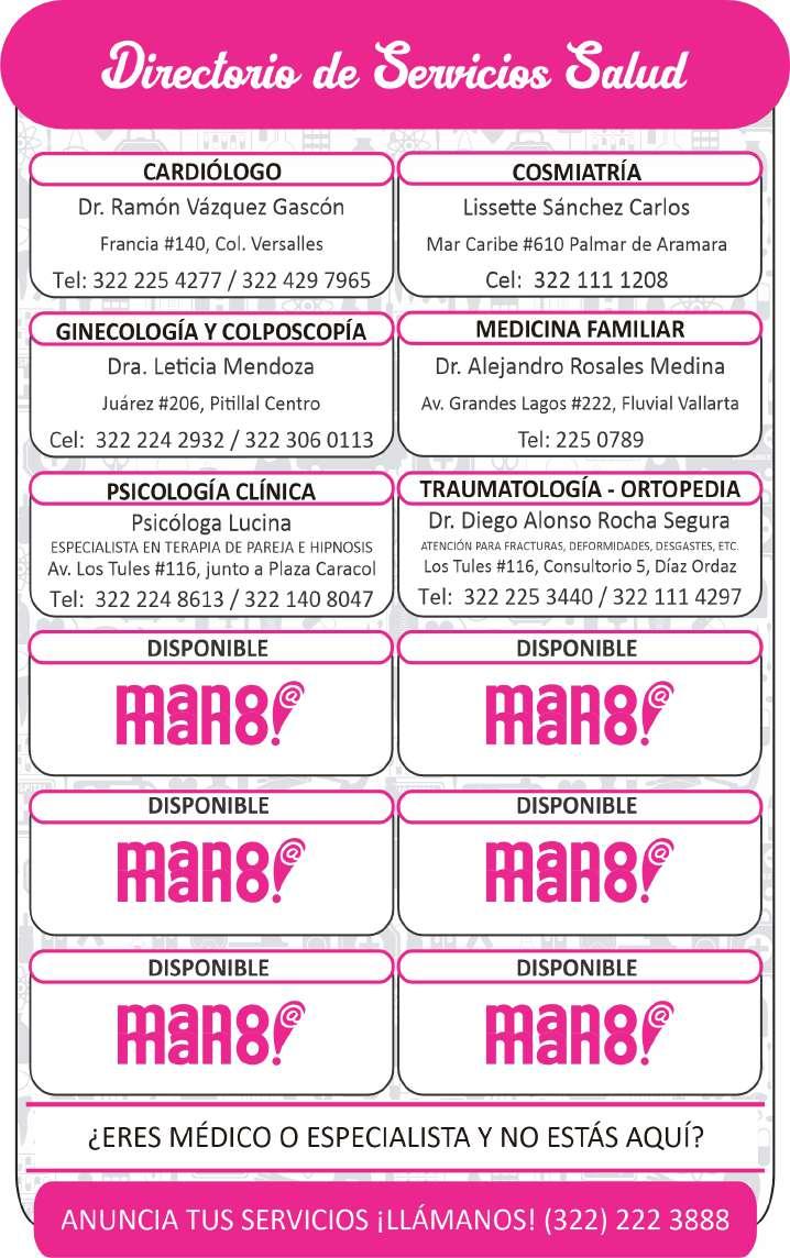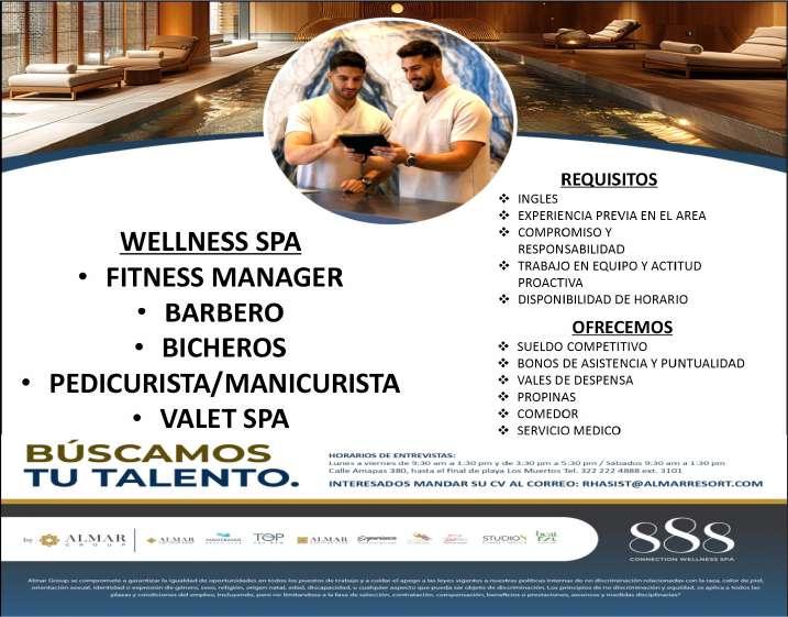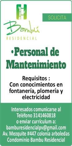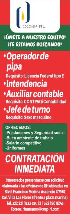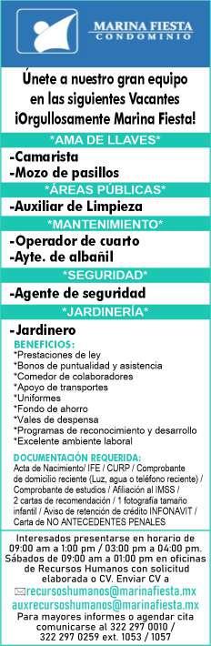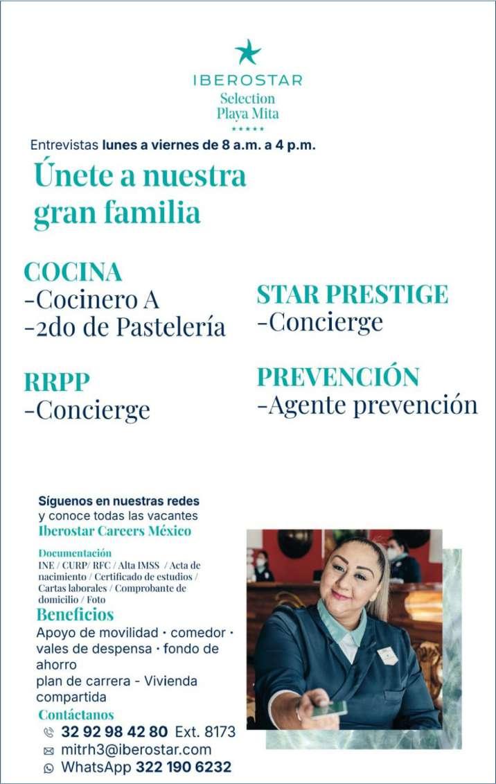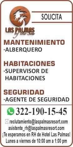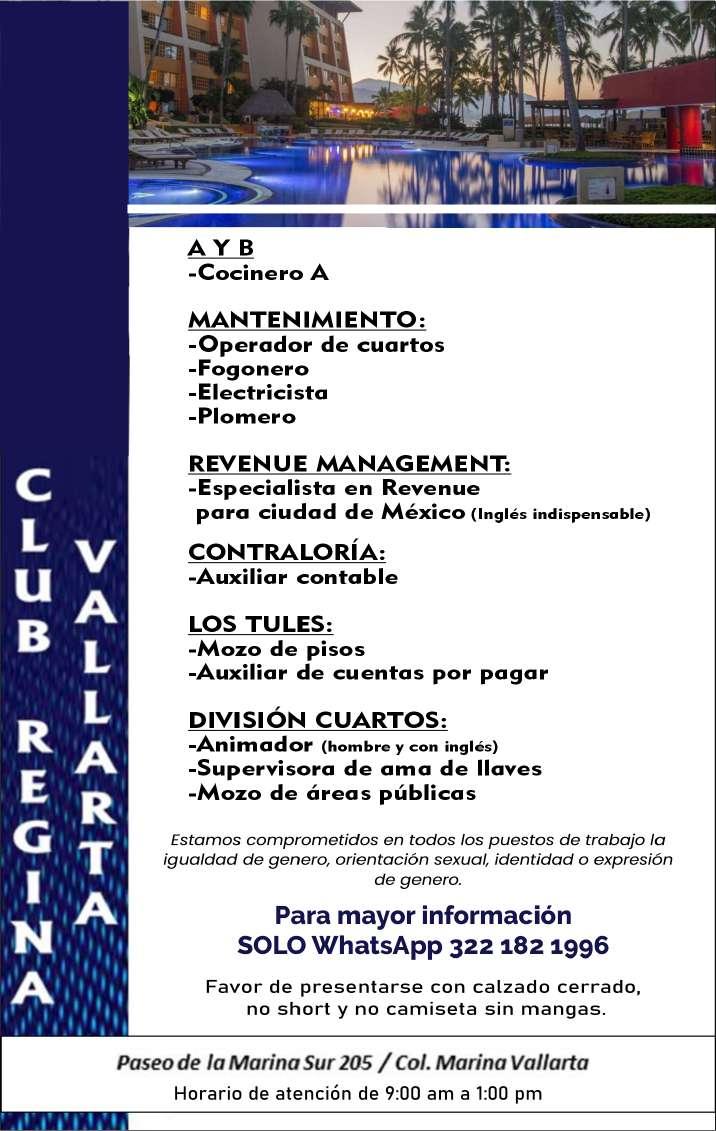 de Teléfonos, Reservacionista, Afanadora, Supervisor de Mantenimiento. Concertar cita al. 322 22 696-96, ext. 167.+