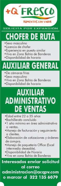 Empresa de bebidas solicita Personal para el área de ventas. Interesados comunicarse al. 322 15 967-07.+