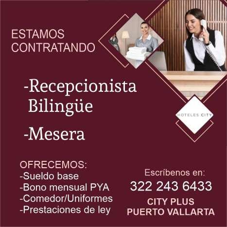 Se solicita el siguiente personal: Recepcionista, Operador de Teléfonos, Reservacionista, Afanadora, Supervisor de Mantenimiento. Concertar cita al. 322 22 696-96, ext. 167.+