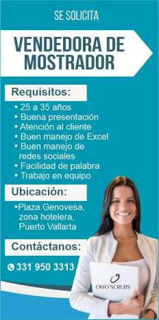 Se solicita Ayudante de mostrador, ambos sexos. Informes al. 322 29 376-48.+