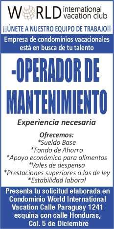 Se solicita el siguiente personal: Recepcionista, Operador de Teléfonos, Reservacionista,