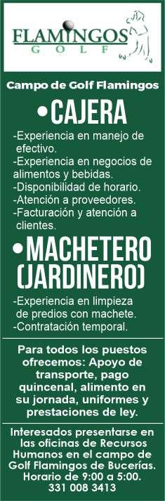 Col. Guadalupe Victoria, 300 meters, $30,000 and 400 meters, $50,000. Info. 322 20 333-50, 322 26 256- 10.+