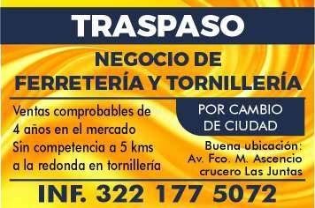 Col. Verde Valle, 5,936.80 m², ideal for a warehouse, nursery, or ranch. $1,800,000. Info: 322 18 909-18, 322 19 747-50.