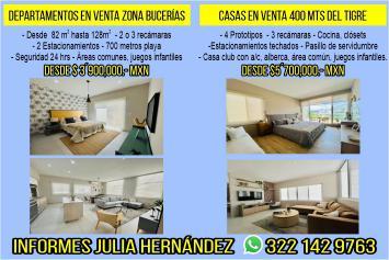 Departamentos en venta desde 82 M2 hasta 128 M2, 2 0 3 Rec., 2 estacionamientos, seguridad 24 hrs. Desde $3´900,000 mxn. Inf. 322 14 297-63.+