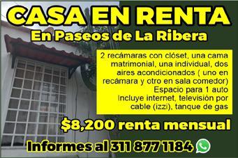San Vicente, 2 Rec., semi amueblado, alberca, coto, a/a, cocina integral. $9,000. 322 35 045-68.*