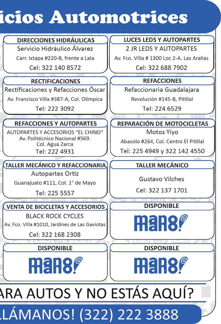 Laboratorio de inyectores, motores, transmisiones automáticas y STD, cremalleras, frenos, suspensiones, amortiguadores, inyecciones, afinaciones. Manejamos todas las marcas. 322 13 923-13.+