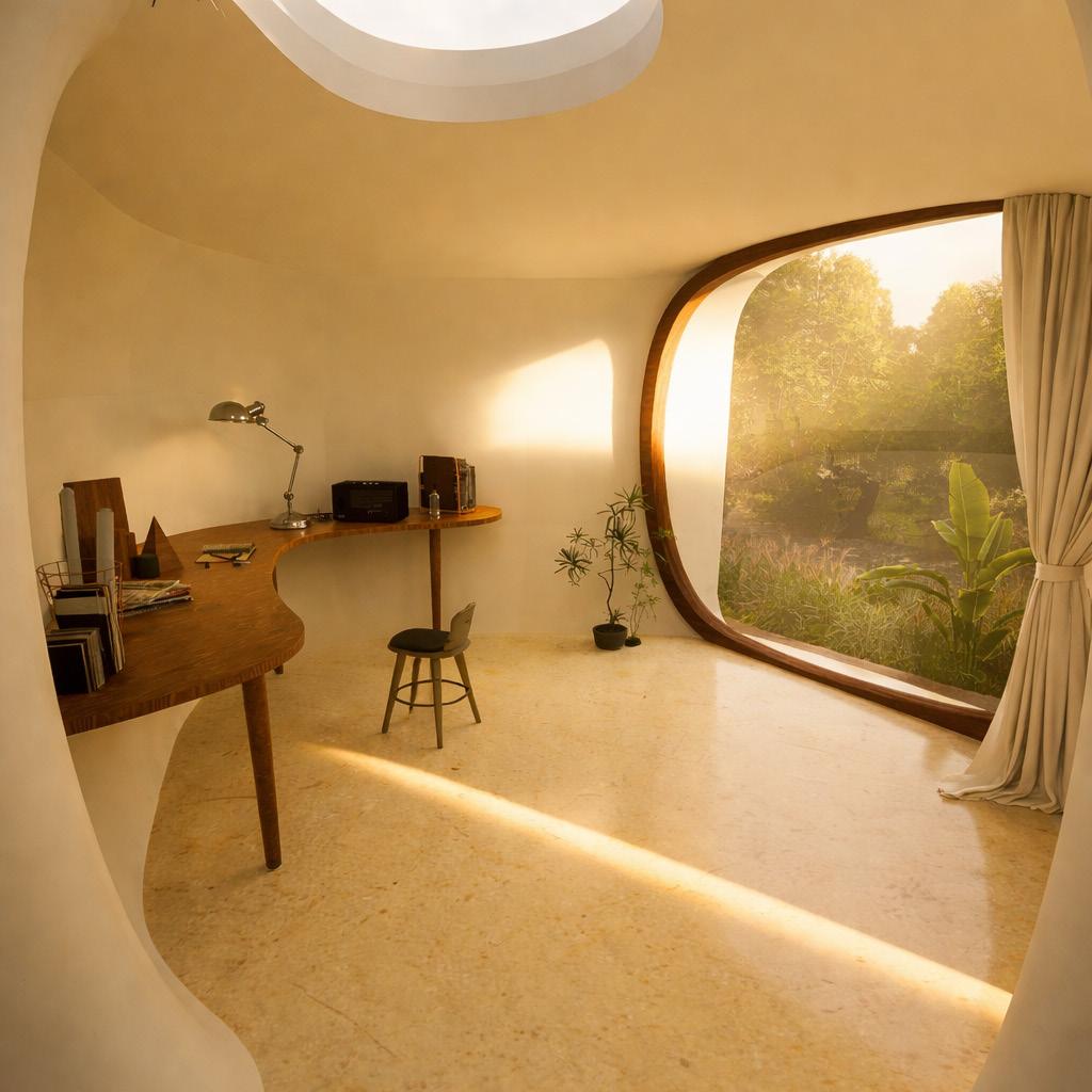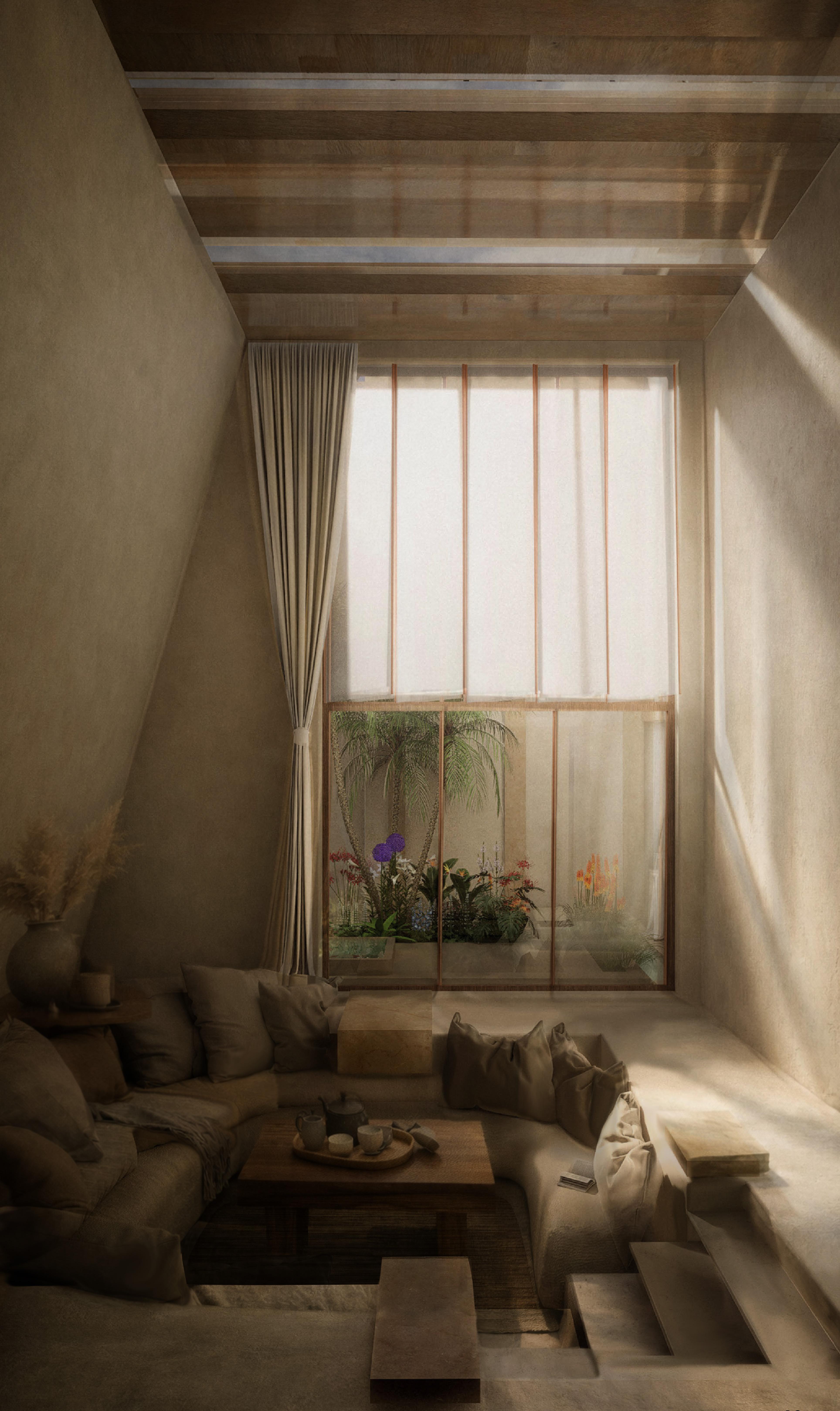 The aim is a sustainable and culturally rooted home that balances openness with enclosure.