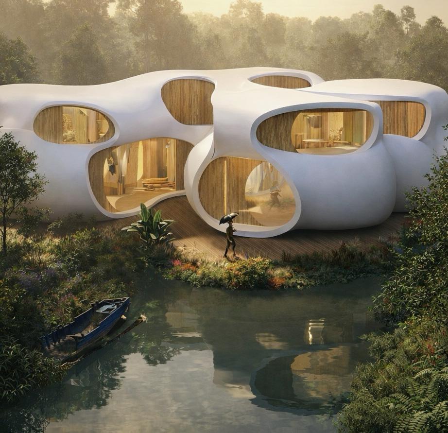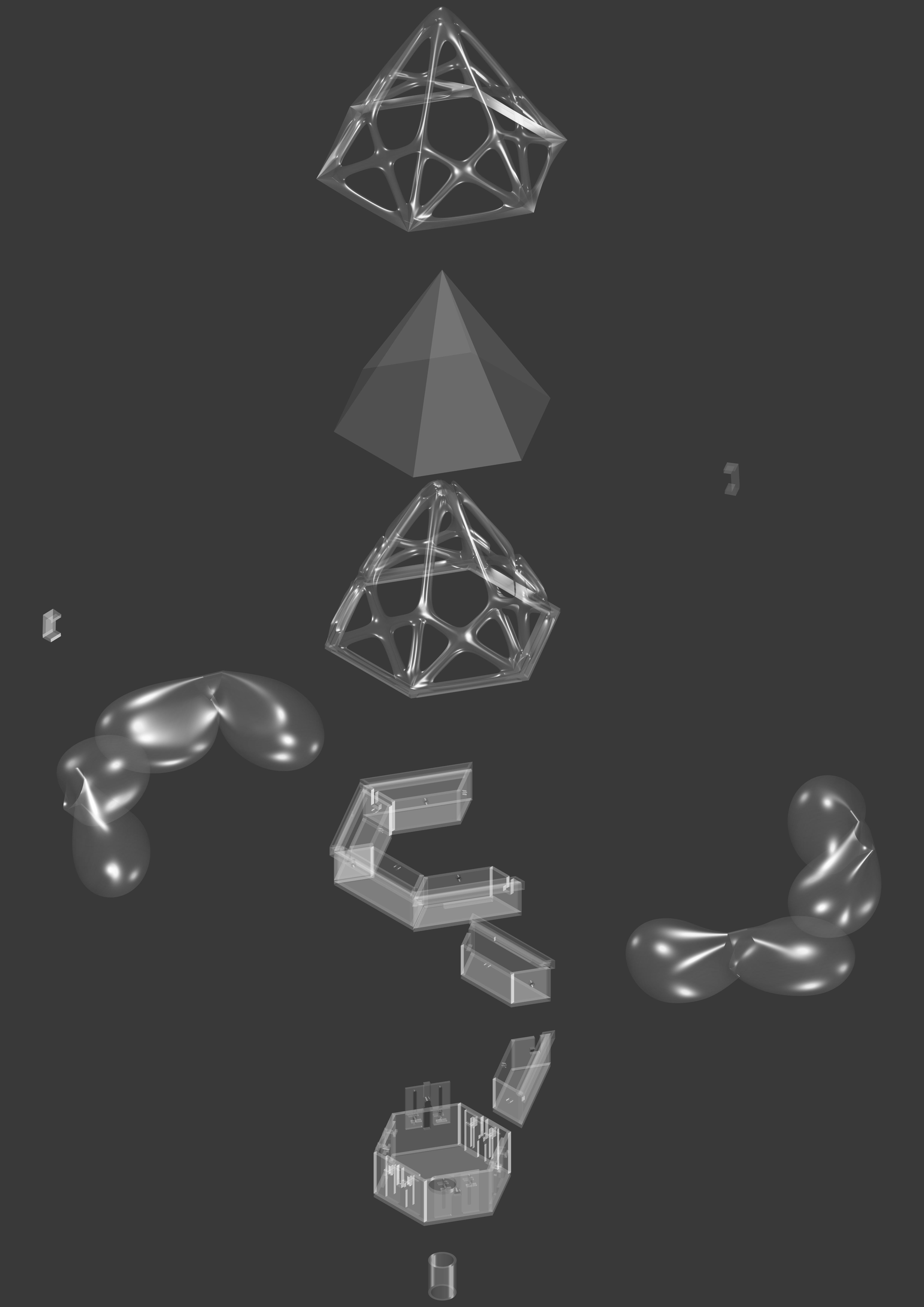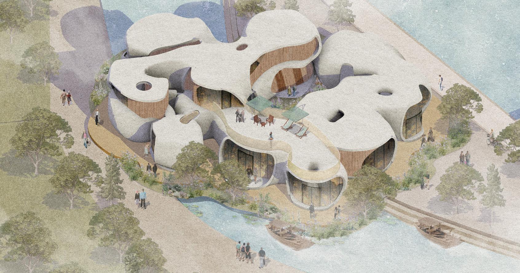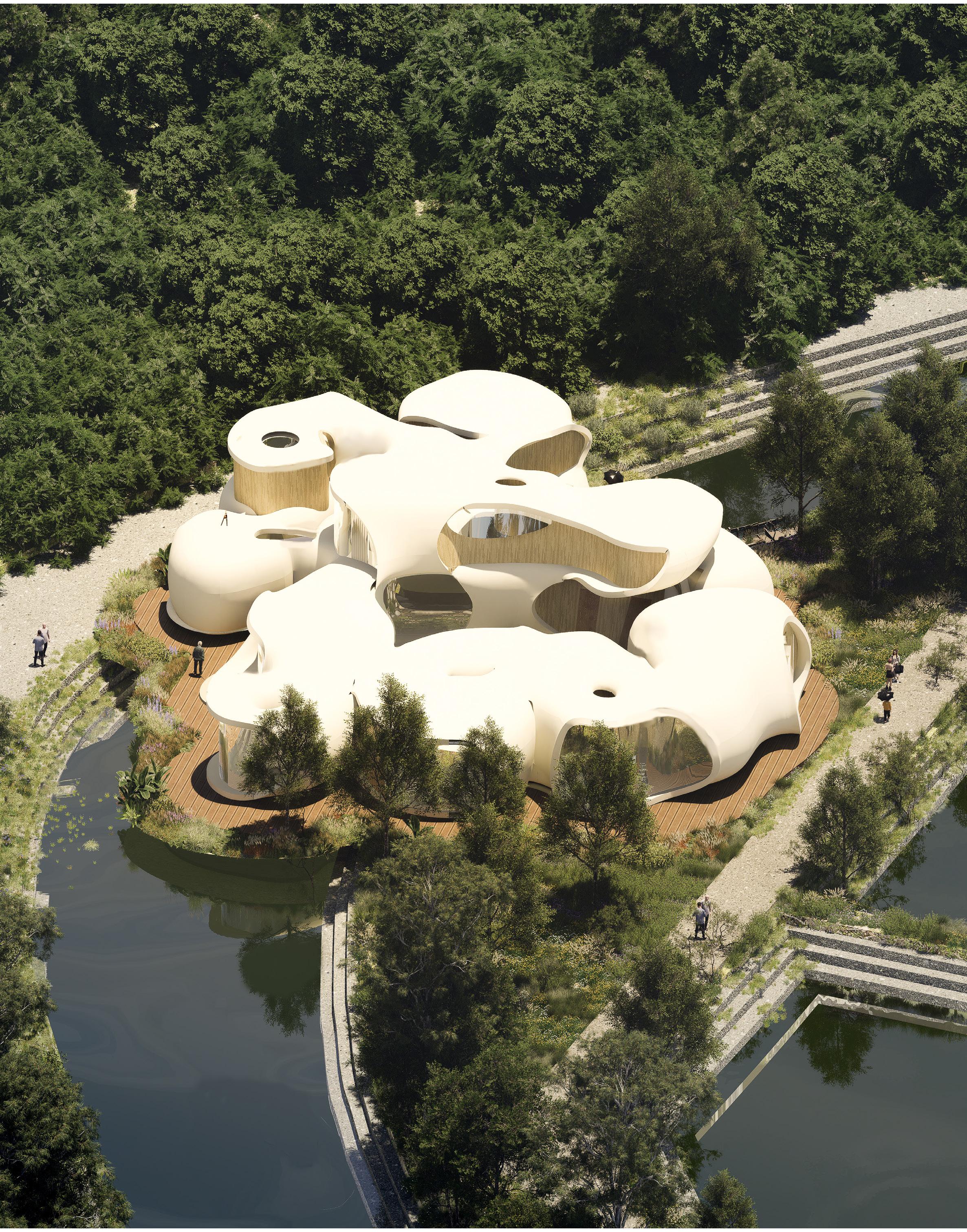 The form is developed using SubD and Grasshopper to achieve structural efficiency while maximising solar exposure. Designed as a lightweight floating system, it moves with the water like a drifting, dancing object.
