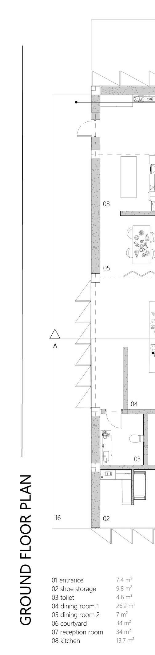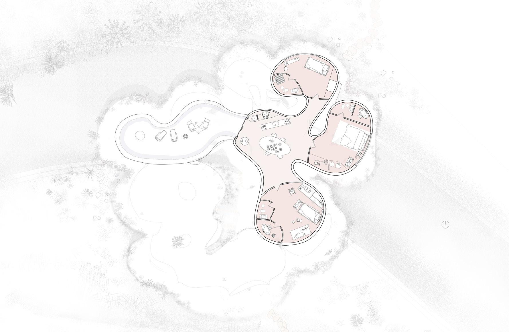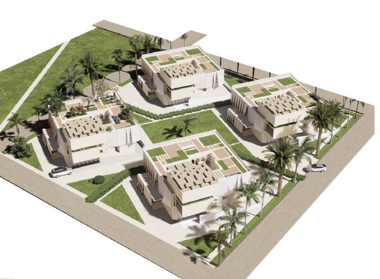 The scheme explores a compact residential model that supports future expansion while responding to local patterns of privacy, family life, and climate.