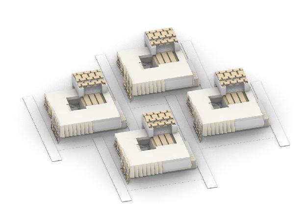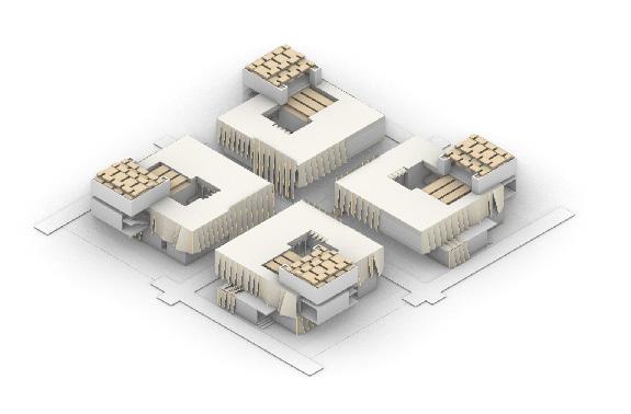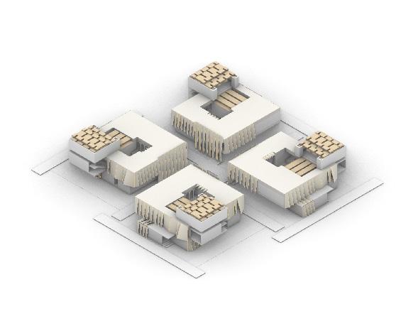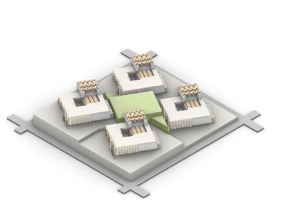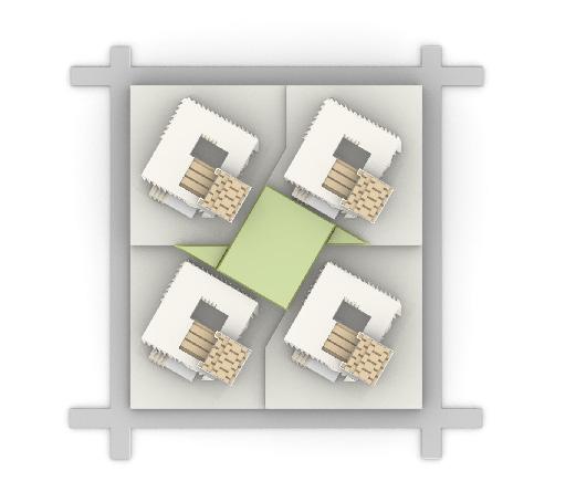 Final intent for community expansion: a garden between four buildings. Maximise privacy and enable green living