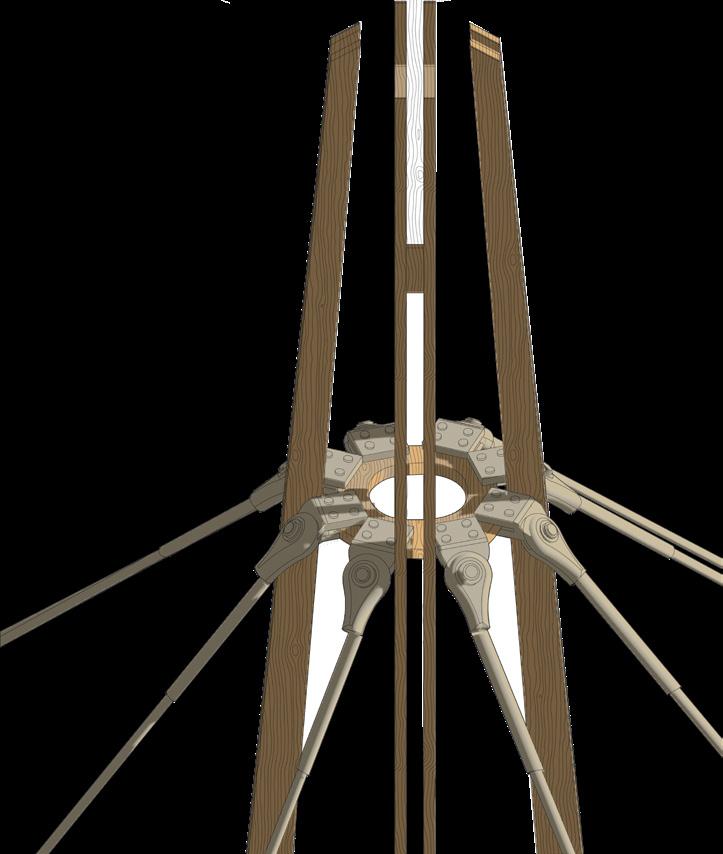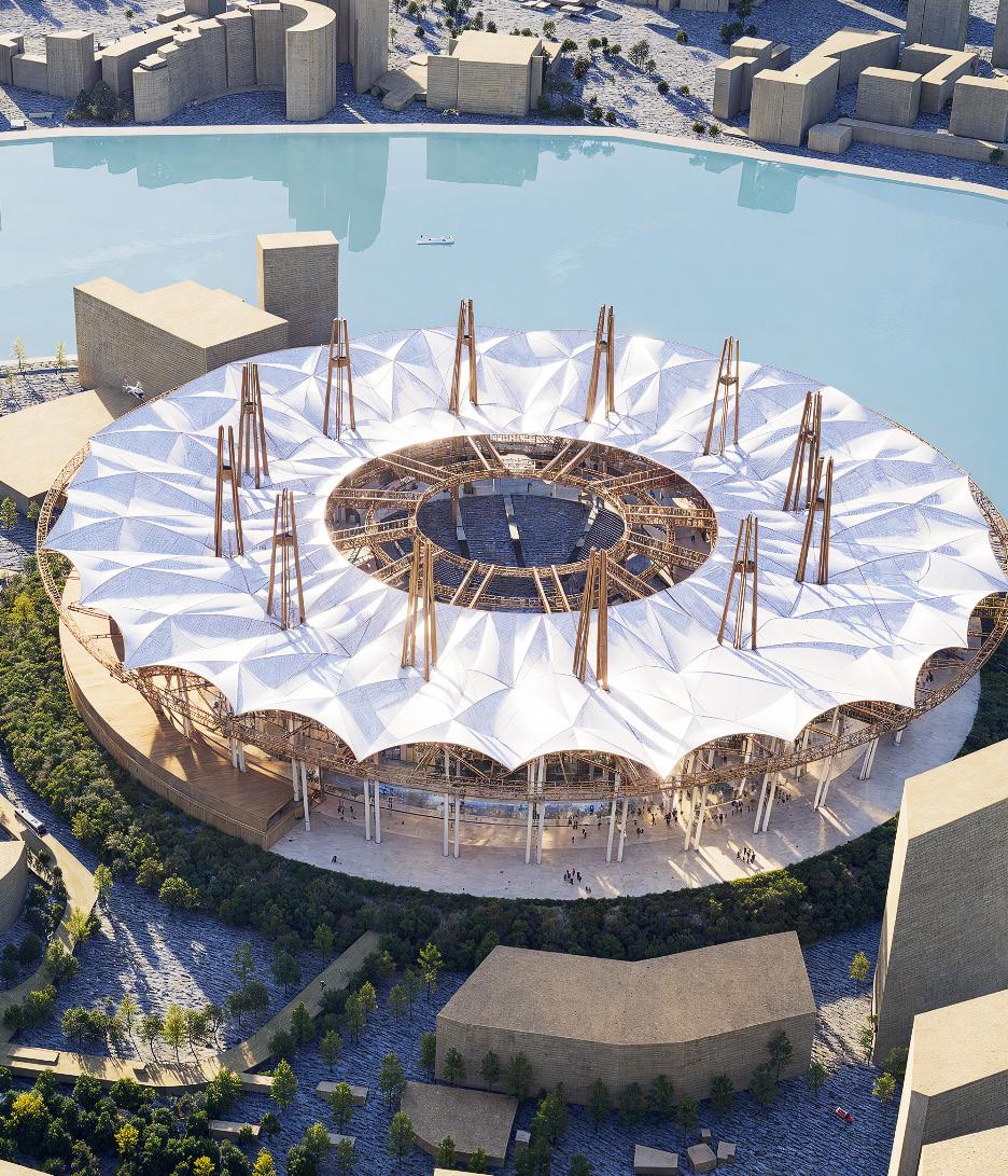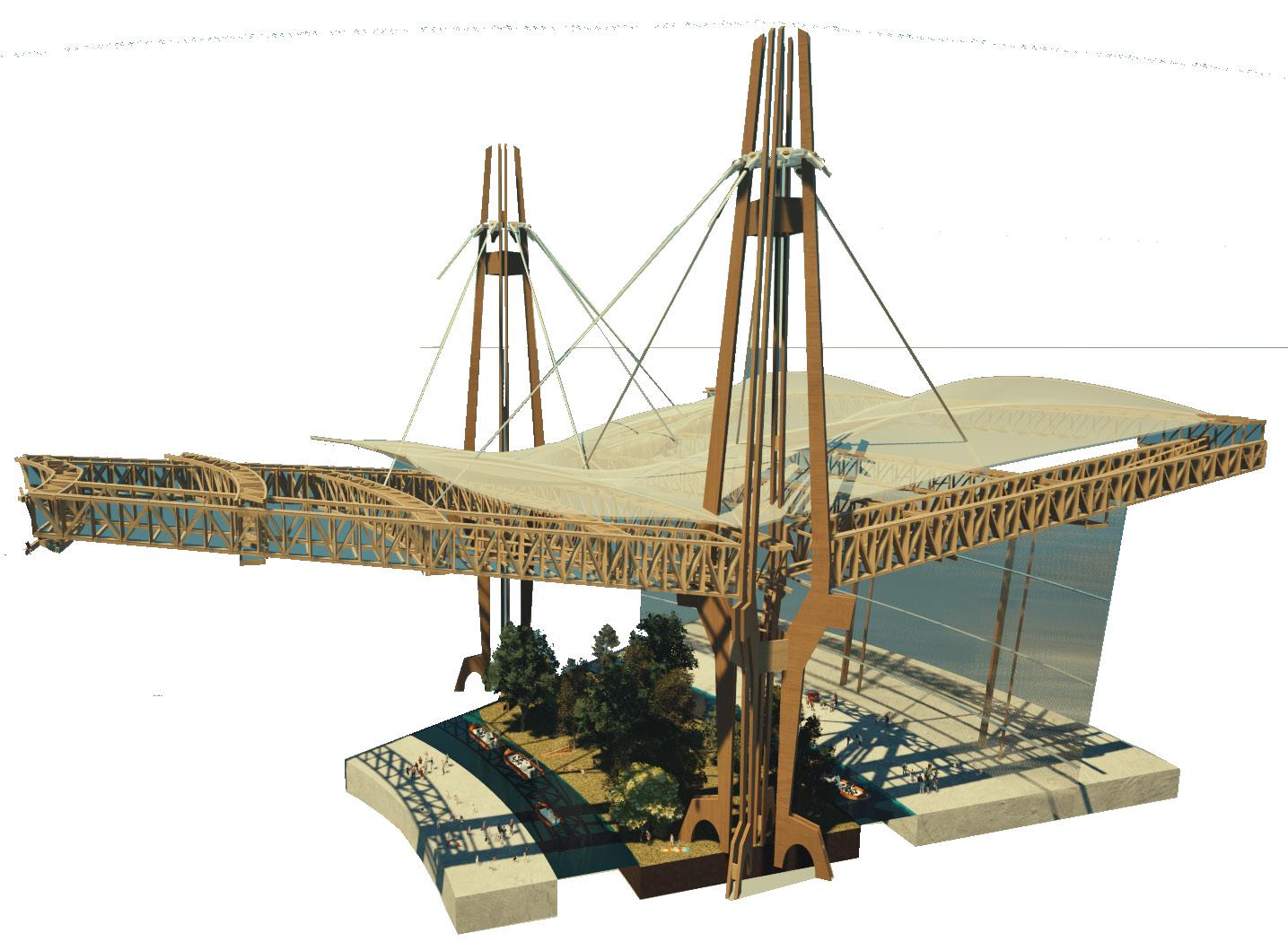 The structure remains lightweight by relying primarily on a cable system, echoing the original O2 design. This approach reduces the need for heavy elements, enhancing material efficiency while preserving the visual and structural language of the original.