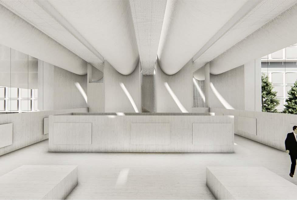 Cyrus Tang Foundation Center is a very meaningful attempt to extend building boundaries. We try to eliminate restrictions by blurring the boundaries between public and private, indoor and outdoor as well as artificial and natural. As a result, buildings are no longer viewed in isolation but integrated into the urban environment. From the perspective of the relationship between the building and the park, our original intention is to eliminate and conceal the building volume and plan the park green space. The roof garden acts as the elevated landscape vegetation. On the floor plan, the areas for conference, exhibition, museum, office, etc. are integrated through the central hall, which can be divided and combined in use. The interface of each function is also blurred, enhancing the spatial experience of walking. The outline of the building is flexible; these zigzag and artificially added skins make internal space and external space of the building connected, and the functions of space penetrate into each other; and it is also an organism that can grow and expand over time. In terms of appearance treatment of the building, the metaphor of glass curtain wall on the intention of silk and bamboo complements the outdoor bamboo forest, and the elevated building volumes scattered around the site are like boulders that stand still after wind and frost, wholly and finally presenting a hidden volume.