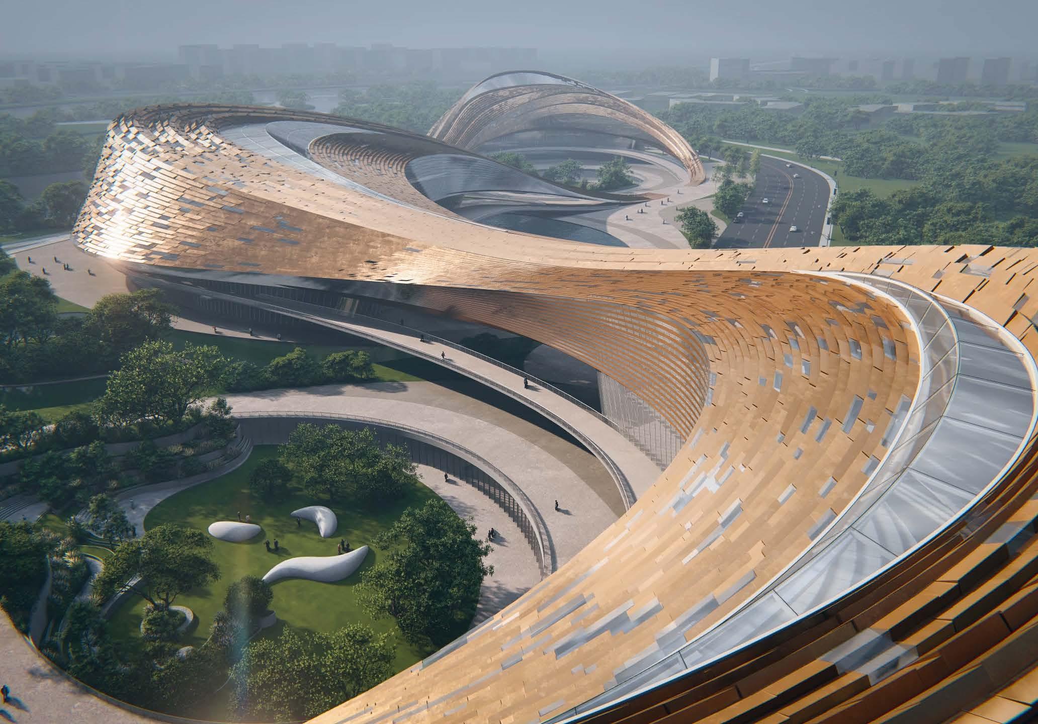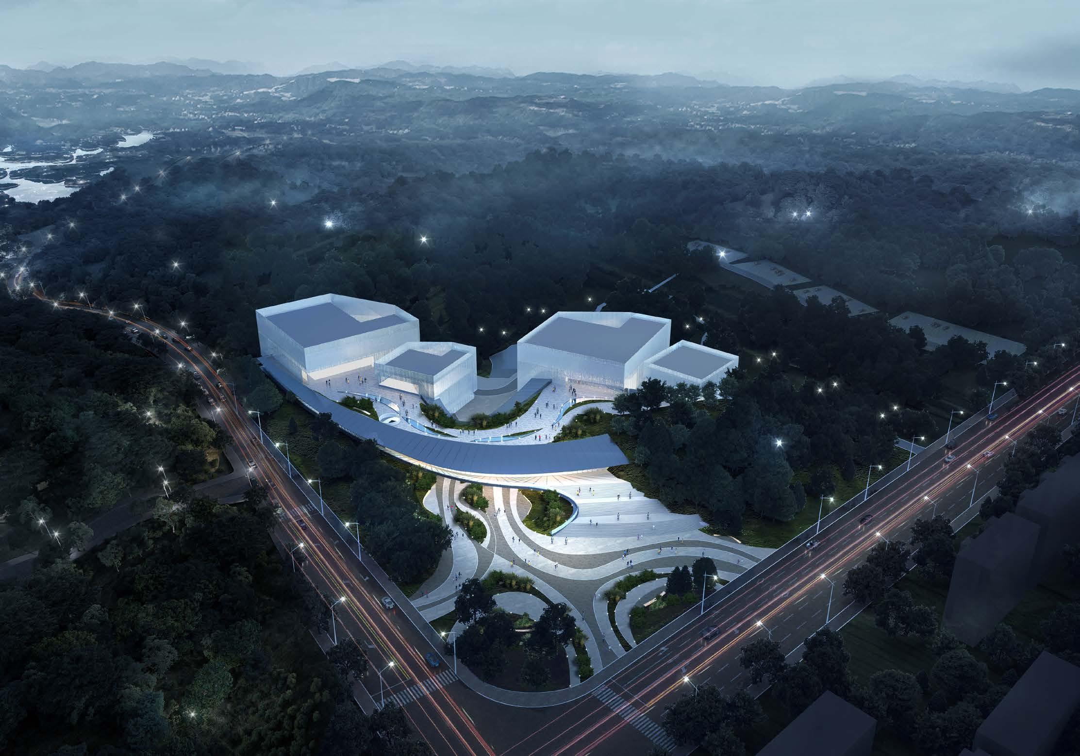 This architectural form reflects the harmonious interplay between mountains and water, embodying cultural depth. The flowing, expansive design aligns with the natural landscape, bringing modernity, monumentality, and ecological sensitivity to the project.