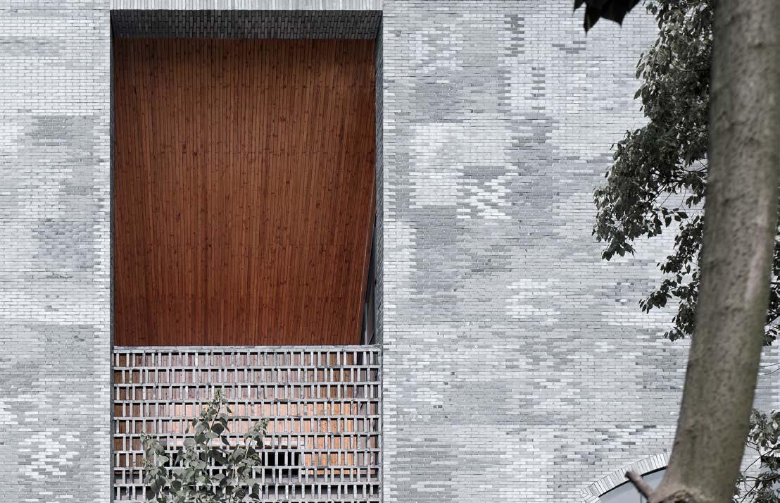 The building's facade resembles the craftsmanship of brick and tile, with each unit layered and interlocked, symbolizing the many forces and energies emerging under the guidance of Dongyang’s cultural heritage.