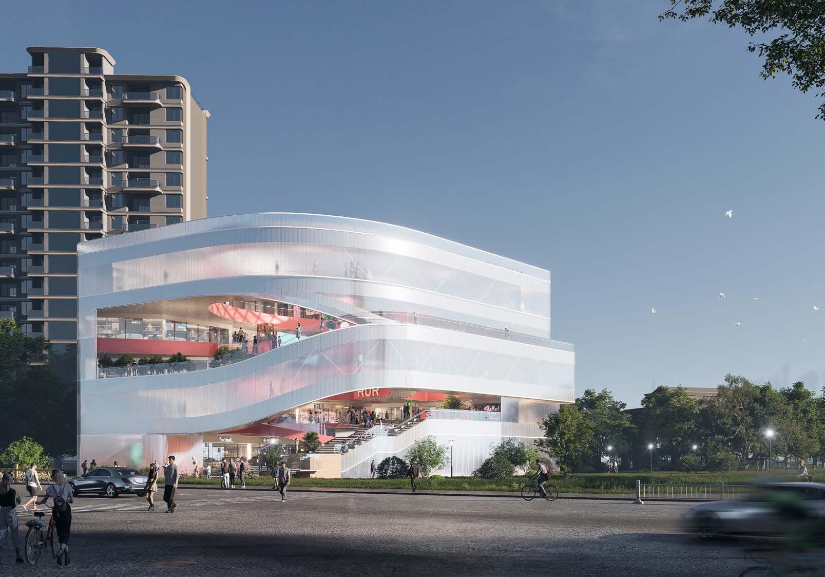 Ganhai Commercial Street is not a traditional marketplace, but a mixed-use space blending commerce, art, and fashionable living. We aim to achieve this through a vibrant array of internal art galleries, installations, and event spaces. The landscape design includes a multidimensional ecological system, extending from the ground level all the way to the rooftop gardens.