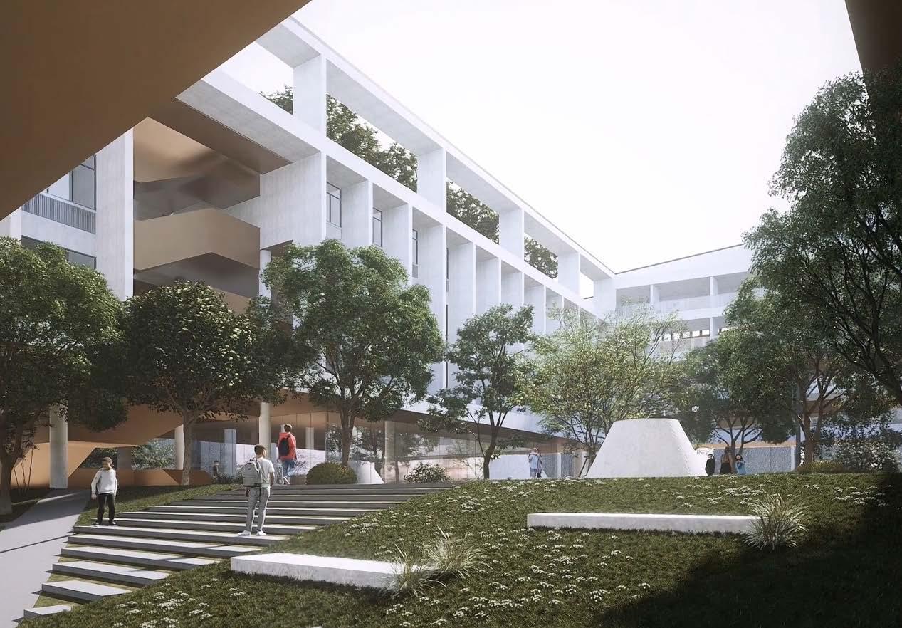 Through this project, we hope to create a brand-new future inter-national school paradigm that is truly student-centred, based in Shan-dong, and going global. The design breaks through the traditional triangular partition model of school functions distribution, draws on the space prototype of traditional Chinese academies, and places students and classroom apartments in the site's core area. We create a living field where students communicate, read, and exercise daily. The whole campus is more like a miniature city. The functions of various groups are mixed with stimulating students to collide with each other and promote new learning inspiration. Furthermore, public spaces such as stadiums, cultural and art centres, libraries, etc., can be opened to society, allowing students to integrate into social life.