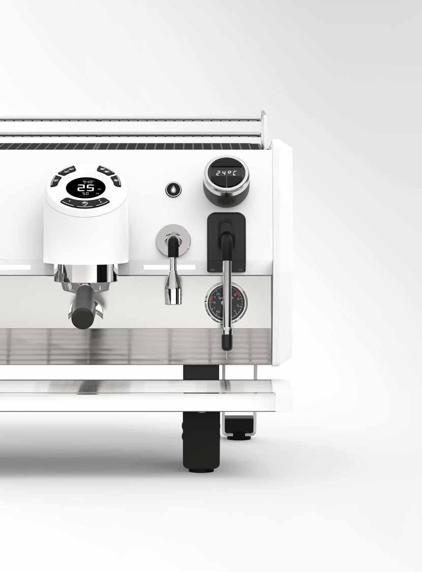 ZOE stands out for its clarity and consistency. Its minimalist design embodies an essential approach, where form meets function to create an intuitive, effortless experience. A dedicated shot timer on each group, advanced electronics, and smart tools for cleaning and extraction management ensure that every cup meets the highest standards.