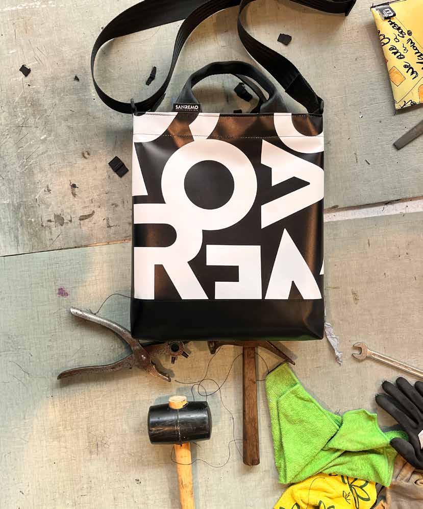 The first project, launched at the Santa Maria Maggiore Men's Prison, was a leather goods workshop. We didn’t have a formal business plan, but we soon realised there was interest in the products, that a market existed, and that it was slowly growing. This led to the idea of structuring the business and enhancing the design with the help of Fabrizio Olivetti, a renowned Venetian graphic designer (he designed the logo of the City of Venice). This process also prompted the decision to use recycled materials, shifting from traditional leather goods to recycled PVC