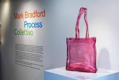 Bag Created by Mark Bradford with Berengo Studio in Murano, this edition consists of 30 glass sculptures depicting shopping bags with engraved marks on the surface, symbolising the temporary nature of imprisonment. A reference to both the PVC bags produced at the men’s prison workshops and the shopping bags common at international events such as the Venice Biennale.