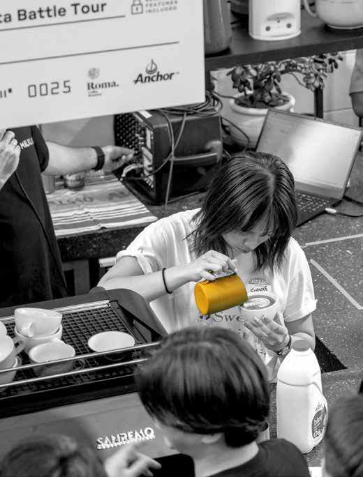 The competition saw 24 contenders face off, including former New Zealand champions, in a showcase of highcalibre latte art. Technique, creativity and control were on full display behind the bar, generating great enthusiasm among the audience and highlighting the role of Sanremo machines in professional coffee settings
