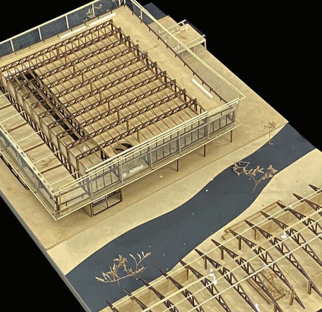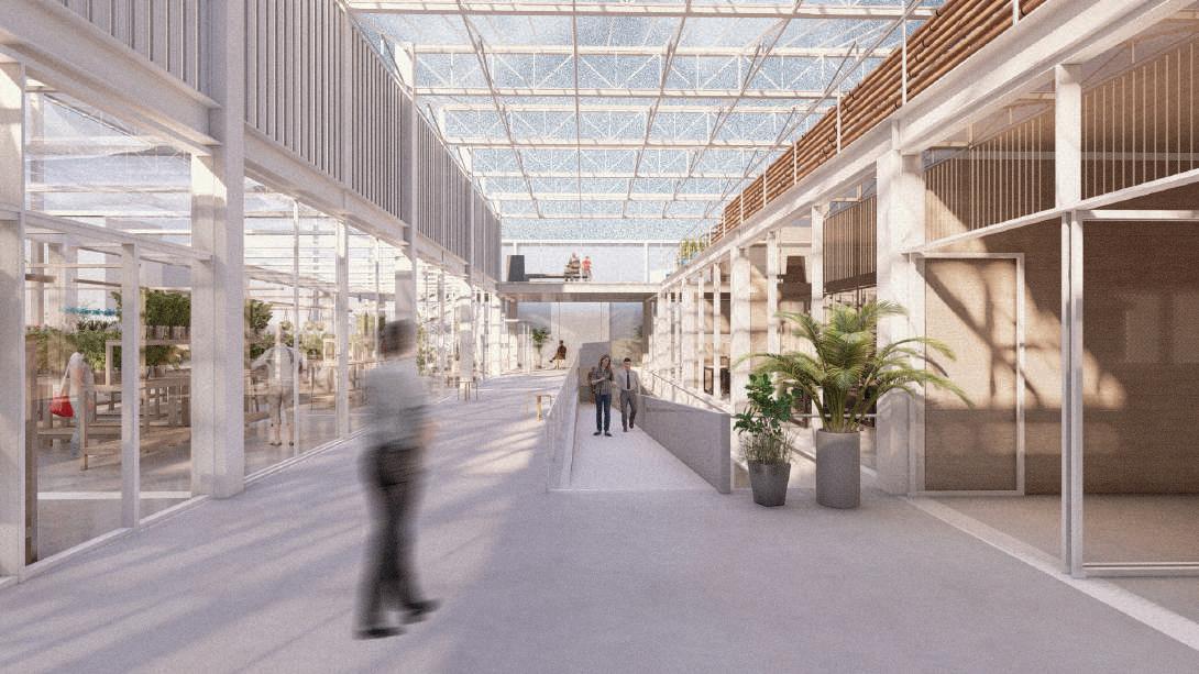 The project is one of a series of elements introduced as part of a masterplan to turn this terrain into a public green space for the city, where productive and infraestructural activities converge with leisure. A condenser is proposed, agglomerating productive, research and development activities around a public area. The program condenses technological research activities for the optimization of crops and processes for urban agriculture.