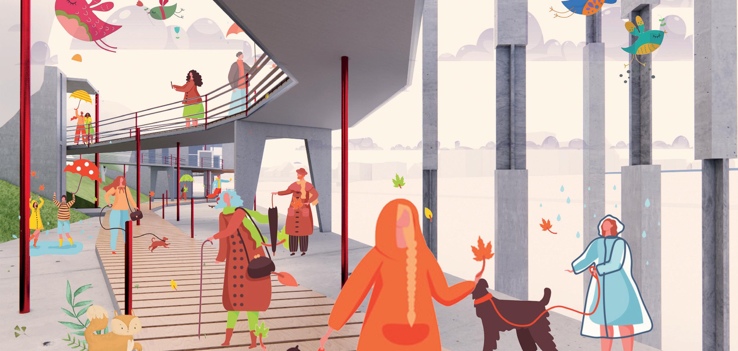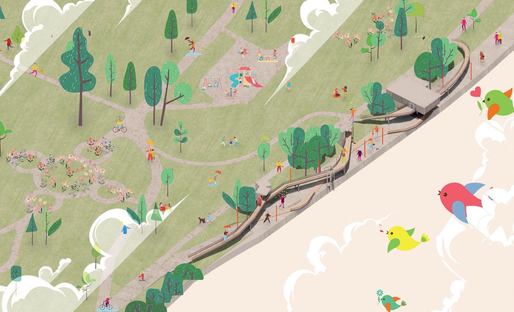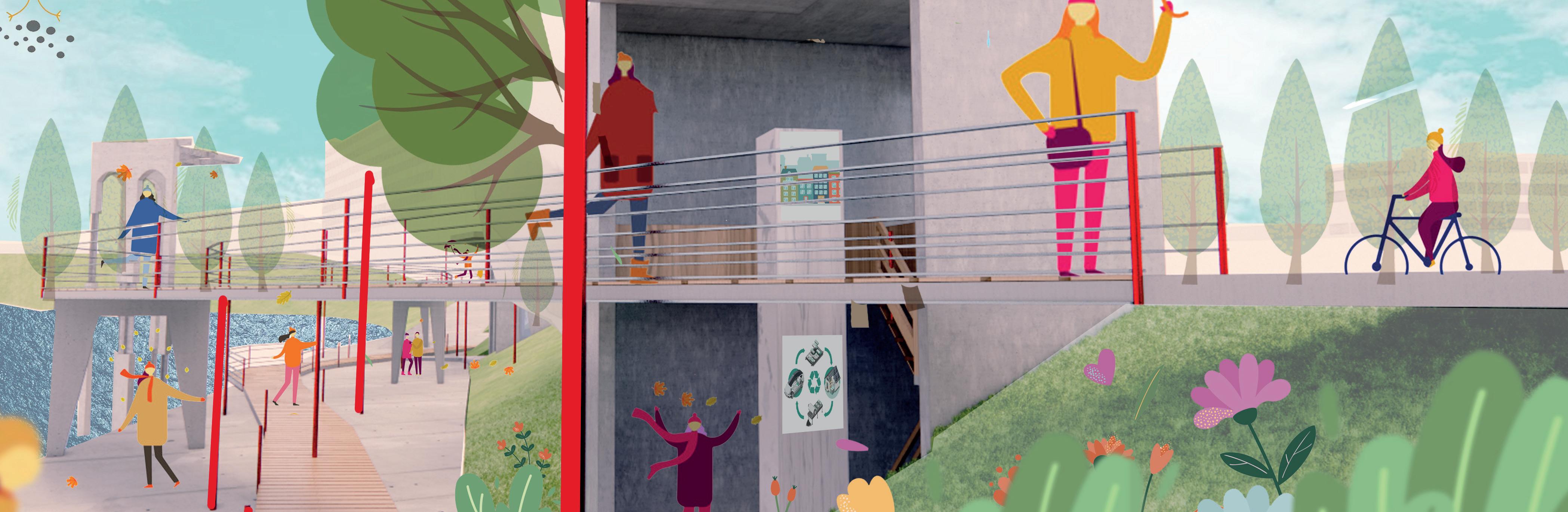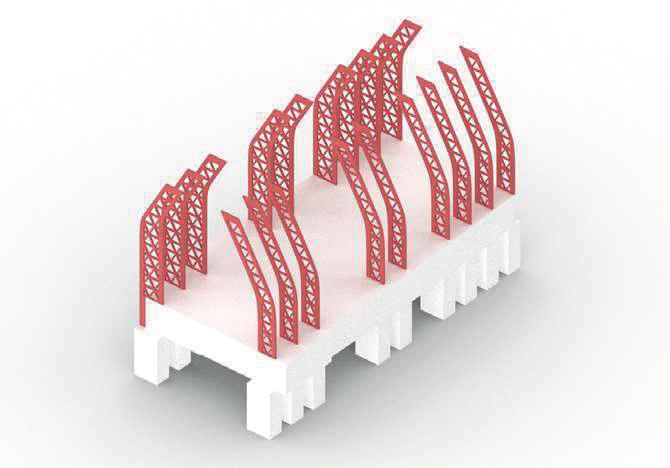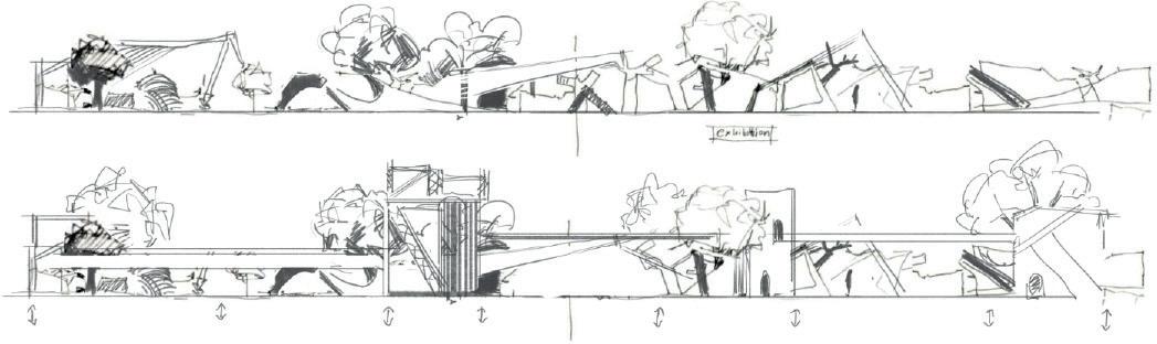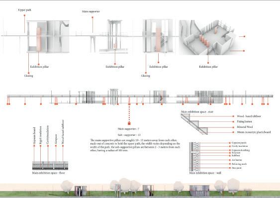 The project is located at Salford, Peel Park, the characteristics of the site are narrow and 200m in lengh, the project aims to create sculpture-like building blocks, capable of resisting the erosion of the river, at the same time, provide access up and down the riverbank path and exhibition spaces for the university and neighbourhoods. the design of the path was inspired by Salford’s history, combining the features of the site, each block was intended to reflect a certain period of the time.
