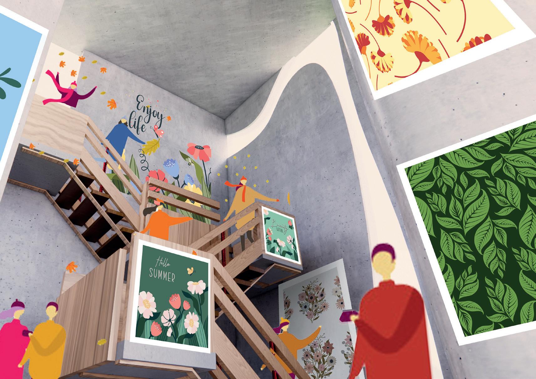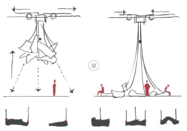 This set of devices should theoretically be part of the building itself. It integrates into the architectural framework, not only providing a visual experience but also serving as a social tool.