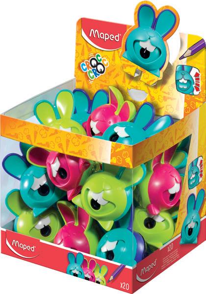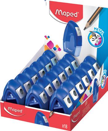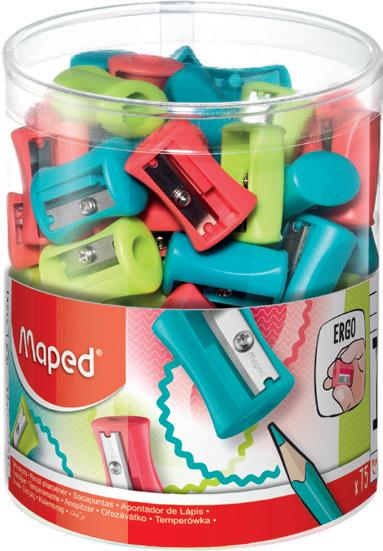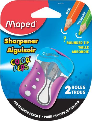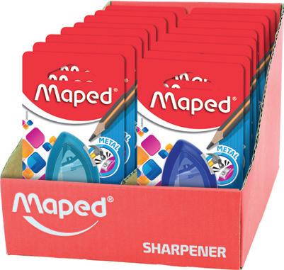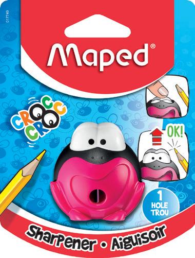 DISPLAYS & INDEXES © Maped 2023 80 • 2-Hole pencil sharpener specifically designed for colored pencils! COLOR’PEPS 2-HOLE SHARPENERS SKU DESCRIPTION QTY PAGE BARCODE 043111 Color’Peps 2-Hole Colored Pencil Sharpener Display x24 24 / 288 39 3 154140 431112 • 2-Hole sharpener with protective cover to keep shavings contained VERTICAL 2-HOLE CANISTER SHARPENERS SKU DESCRIPTION QTY PAGE BARCODE 060211 Vertical 2-Hole Canister Pencil Sharpener Display x18 18 / 360 38 3 154140 602116 • Teeth move up and down when you use this 1 hole sharpener! CROC CROC 'CHOMP' 1-HOLE SHARPENERS SKU DESCRIPTION QTY PAGE BARCODE 017611 Croc Croc 'Chomp' 1-Hole Canister Pencil Sharpener Display x20 20 / 240 40 3 154140 176112 • Eyes pop up when pencil is perfectly sharpened! CROC CROC 'SIGNAL' 1-HOLE SHARPENERS SKU DESCRIPTION QTY PAGE BARCODE 017711 Croc Croc 'Signal' 1-Hole Canister Pencil Sharpener Display x24 24 / 288 40 3 154140 177119 • Classic globe sharpener features a metal canister - perfect for BTS! GLOBE 1-HOLE METAL SHARPENERS SKU DESCRIPTION QTY PAGE BARCODE 051111 Globe 1-Hole Metal Canister Pencil Sharpener Display x16 16 / 192 39 3 154140 511111 DISPLAYS & DISPLAYABLE INNERS • Fun and unique 2 hole sharpener perfect for young kids CROC CROC 'BUG' 2-HOLE SHARPENERS SKU DESCRIPTION QTY PAGE BARCODE 501700 Croc Croc 'Bug' 2-Hole Canister Pencil Sharpener Display x18 18 / 216 40 3 154145 017007