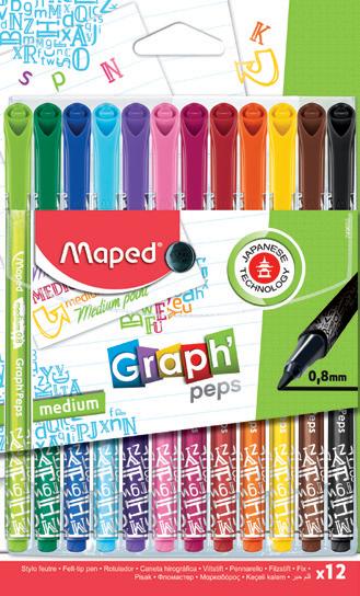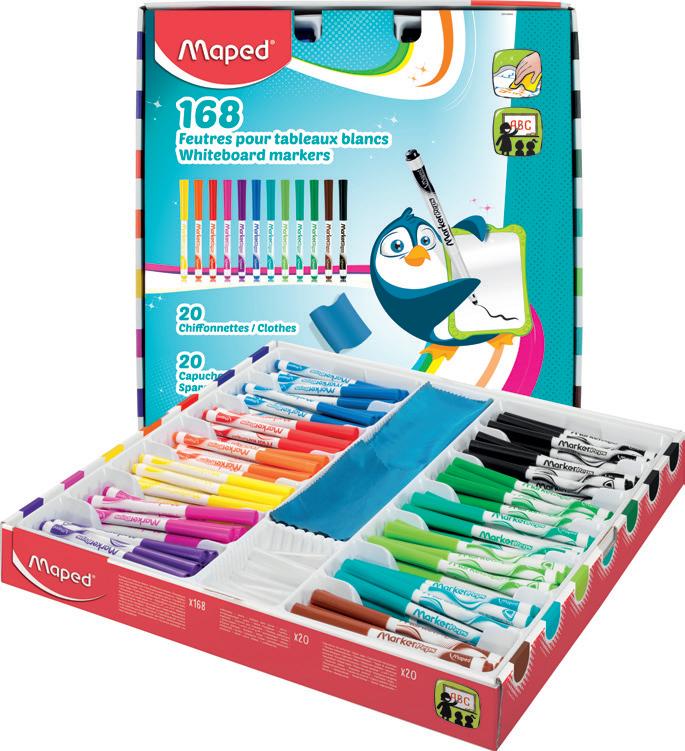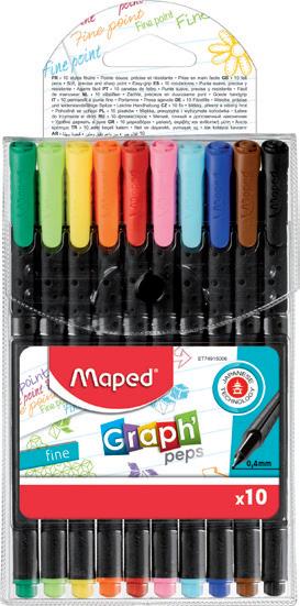 DISPLAYS & INDEXES © Maped 2023 78 • Classic highlighter with new on-trend pastel colors! FLUO PEPS PASTEL HIGHLIGHTERS SKU DESCRIPTION QTY PAGE BARCODE 742538 Fluo Peps Classic Pastel Highlighter Display x24 24 / 144 33 SKU DESCRIPTION QTY PAGE BARCODE 735531 Marker’Peps Dry Erase Jumbo Chisel Tip Markers x12 - Black 12 / 144 32 SKU DESCRIPTION QTY PAGE BARCODE 735031 Marker’Peps Dry Erase Jumbo Bullet Tip Markers x12 - Black 12 / 144 32 • Jumbo Chisel Tip Dry Erase Markers are low-odor and erase easily! • Jumbo Bullet Tip Dry Erase Markers are low-odor and erase easily! DRY ERASE CHISEL TIP MARKERS DRY ERASER BULLET TIP MARKERS • Perfect for writing, drawing, sketching and even everyday doodling! GRAPH'PEPS FINE TIPPED FELT PENS SKU DESCRIPTION QTY PAGE BARCODE 749111 Graph'Peps Fine Tipped 0.4mm Fine Line Triangular Felt Pens x12 - Black 12 / 288 30 3 154147 491119 DISPLAYS & DISPLAYABLE INNERS • Classic highlighter with totally unique, GLITTER Pastel colors! FLUO PEPS PASTEL GLITTER HIGHLIGHTERS SKU DESCRIPTION QTY PAGE BARCODE 742038 Fluo Peps Classic Pastel GLITTER Highlighter Display x12 12 / 144 34 • 10 drawings with their own paint pallet • Displayable Inner ALL-IN-ONE PAPERS TO PAINT SKU DESCRIPTION QTY PAGE BARCODE 831225 All-In-One Paper to Paint - 10 Pages + FREE Brush 12 / 24 29