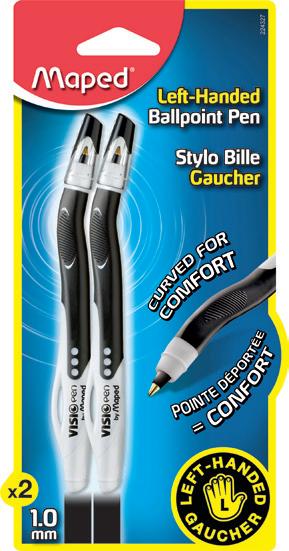• Unique, ergonomically designed curved barrel angles the tip of the pen so you can see it while writing