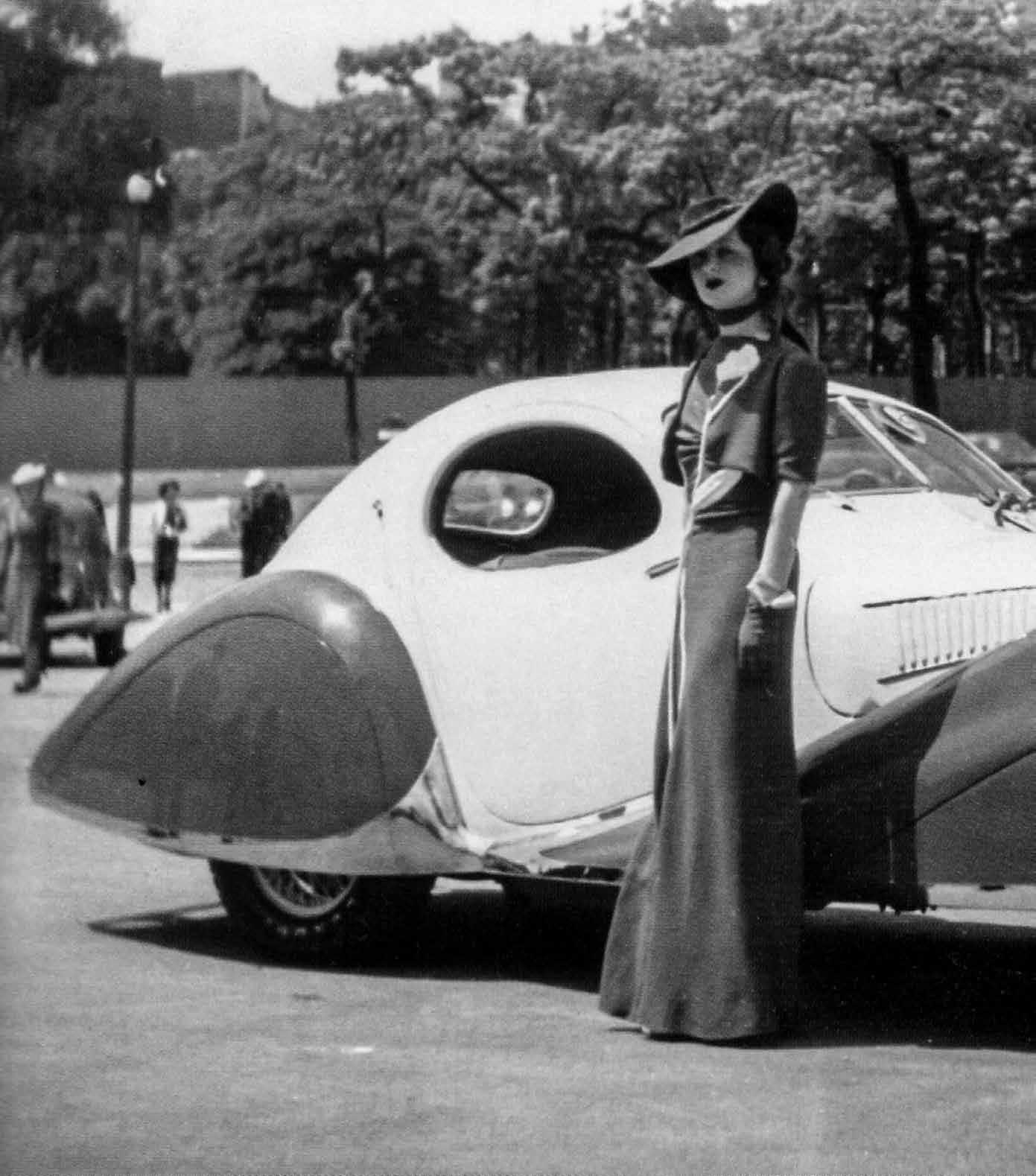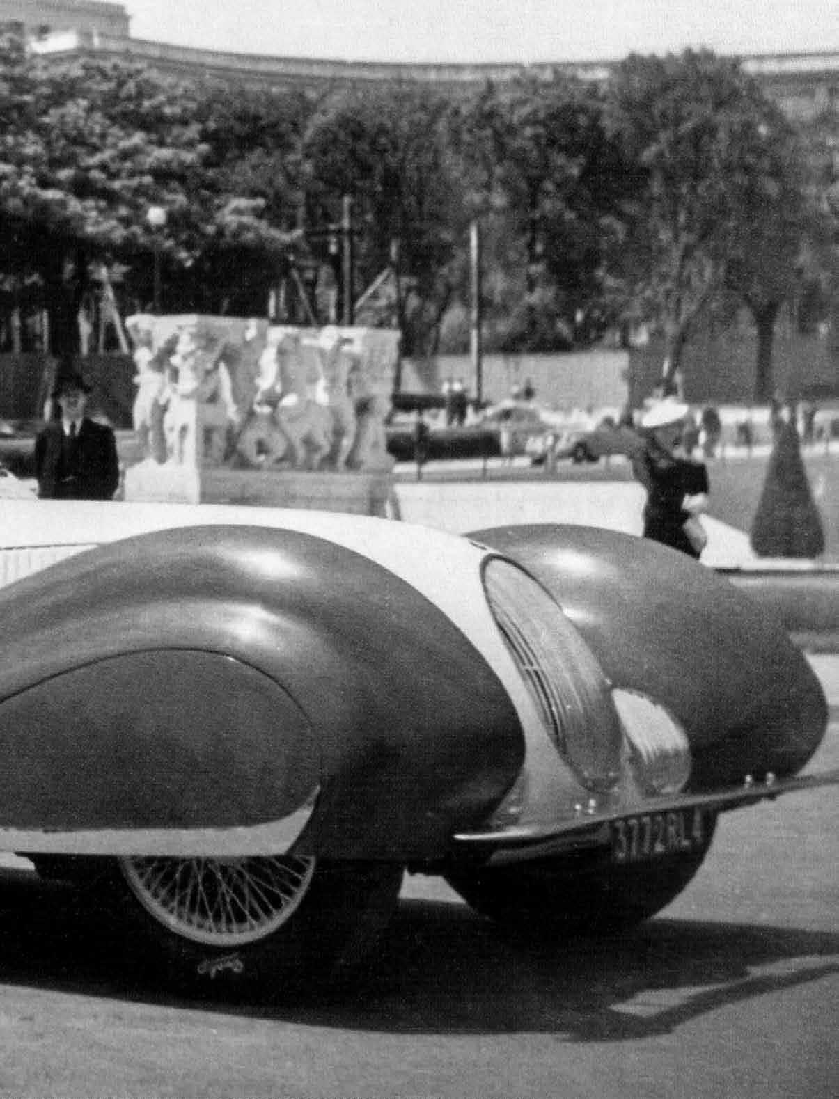 Pages 8–9 The Maharani of Kapurthala, Stella Mudge, with her wedding gift, a Talbot-Lago T150 with exquisite Figoni et Falaschi coachwork.