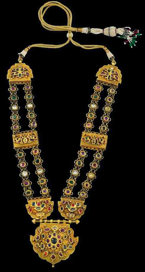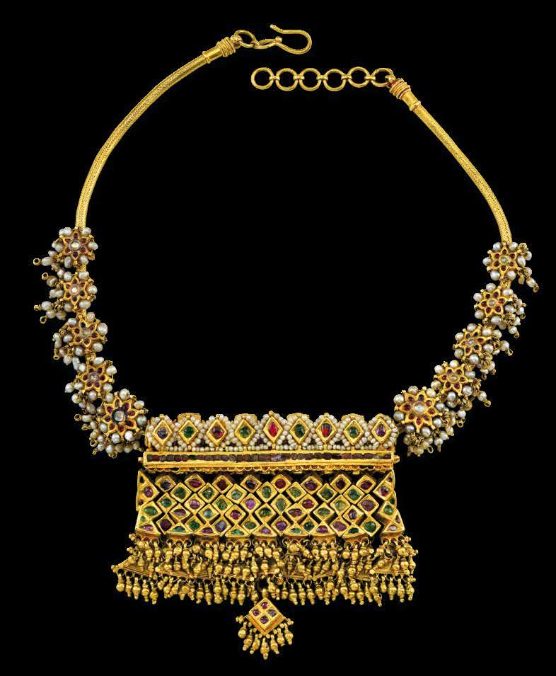 Timaniya (necklace) Rajasthan, 19th–20th century Gold, white sapphires, emeralds, rubies pearls Amrapali family collection