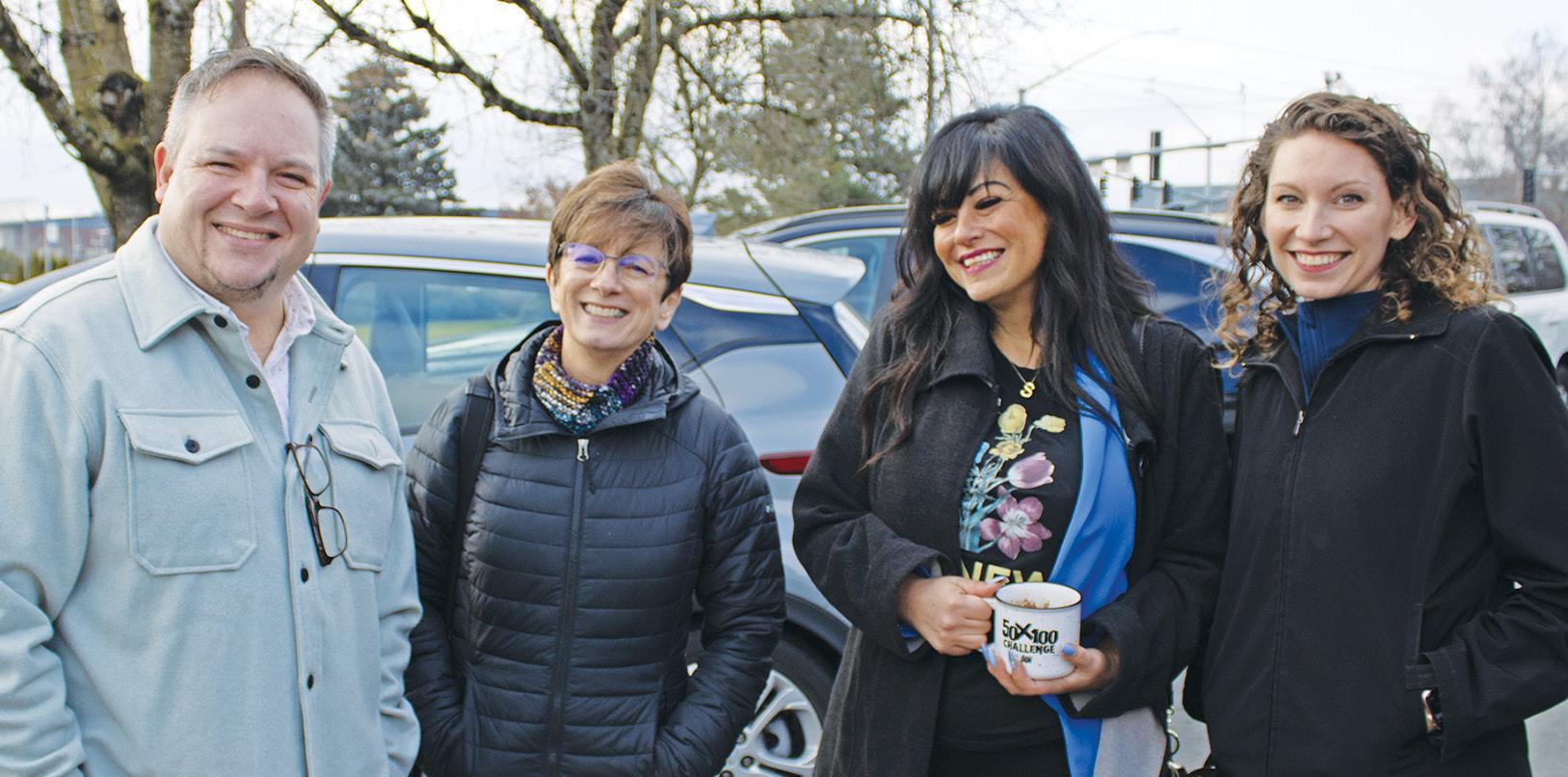 Salem Chamber CEO Tom Hoffert, Salem Mayor Julie Hoy, Keizer City Councilor Soraida Cross, and Salem Chamber Membership Manager Jackie Roché at a ribbon-cutting ceremony in January.
