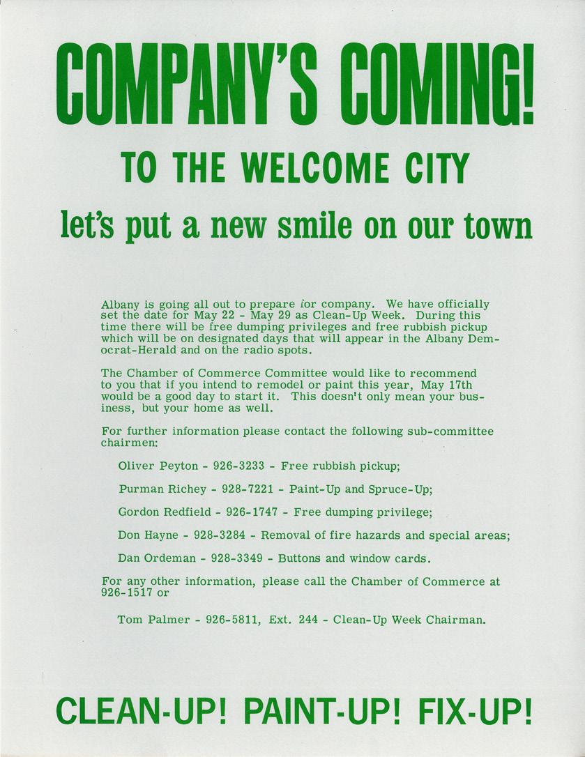 Promotional material for a 1966 clean-the-town program the Chamber organized.