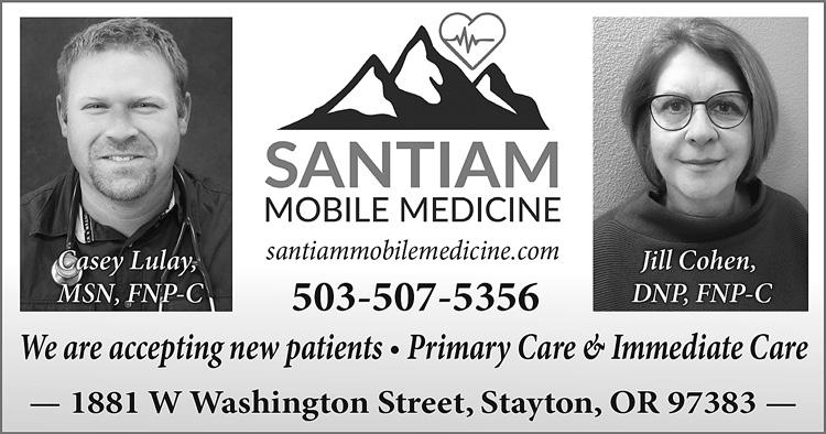 Facebook: OurTown / Santiam ourtownsantiam.com May 2024 • 17 P P E E X X E X C A V A T I O N E X C A V A T I O N CCB# 2281 1 2 Inc. Inc. Residential / Commercial Site Preparation, Utilities, Land Clearing, Demolition and Removal, Tree and Stump Removal, Driveways, Dump Truck Hauling, Retaining Wall Systems, Field Drainage, Septic Systems 503-510-5480 apexexcavationinc@gmail.com Hair Cuts Sensitive & Medicated Baths Flea Funerals Pet Massage Pawdicure (Nail Trims) Teeth Brushing Blueberry Facials Call for appointment: 503-769-4299 260 W. Locust, Stayton kathleenspetgrooming@yahoo.com Order pet medications online: www.kathleenspetgrooming.com Professional Pet Groomer Skin & Coat Care Specialist for Your Pet Kathleen’s Pet Grooming salemhealth.org When there’s heavy lifting to