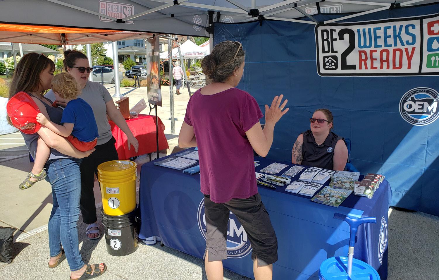 Participants in the July 12 emergency preparedness fair in Silverton receive information at the Oregon Emergency Management booth. JAMES DAY