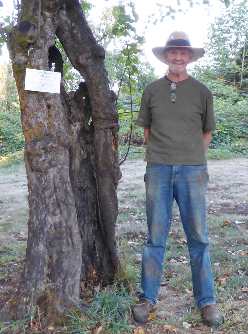 Jim Toler, owner of GeerCrest Farm just south of Salem, beside one of the original fruit trees planted on the farm by Ralph Geer.