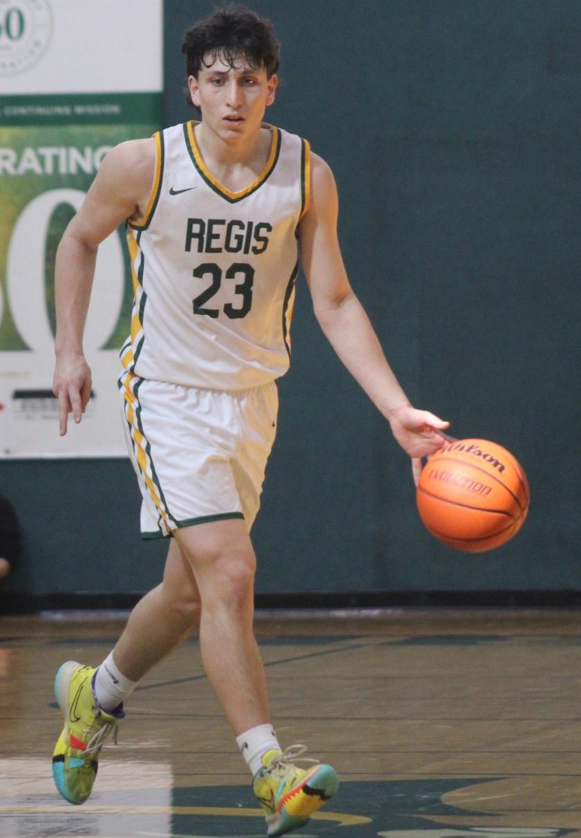 Regis senior Isaiah Koehnke looks for room to maneuver. The Rams’ sharpshooter set a state high school scoring record this season. JMCDONALDMEDIA