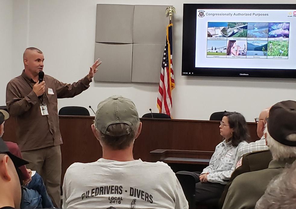 Greg Taylor, a fish biologist with the U.S. Army Corps of Engineers, discusses the planned drawdown of Detroit Lake at a public outreach session on May 31 at Detroit City Hall.