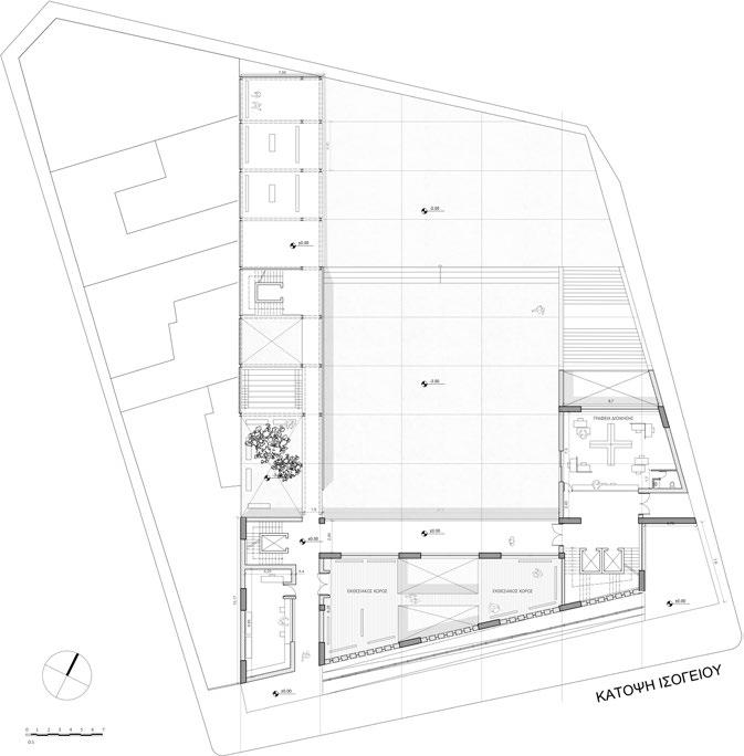 tutes a vague boundary, a “threshold”, between public and private space. The permeability of the building immediately makes the space accessible to all, highlighting the intention to democratise art. The main movement starts from the ramp on “Iakhou” street, which later ends in a network of ramps that reach the inclined roof of the main building. From that point one can admire the beautiful view towards the Acropolis.