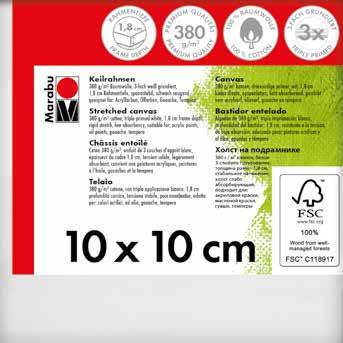 Keilrahmen mit 380 g/m² Baumwollgewebe bespannt und dreifach grundiert, geeignet für Acryl-, Öl-, Gouache- und Temperafarben�