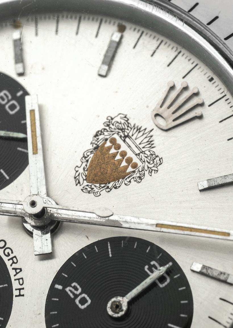 Please note that straps and any other items made from materials derived from endangered or otherwise protected species (e.g. alligator, crocodile, lizard ....) in the absence of CITES permits are not sold with their watches and are present in the picture for display purposes only. In case of shipping to Countries with regulations that forbid these straps, we reserve the right to remove them before shipping. These lots will be marked in the catalogue with # symbol.