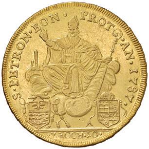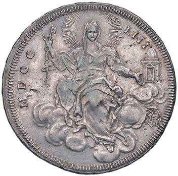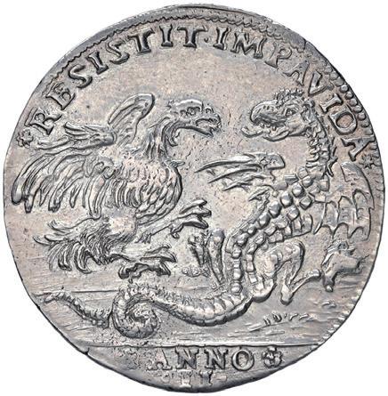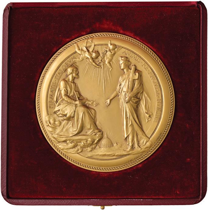 1515 Medaglia. Pio VII (1800-1823) D/ Pio VII orante davanti al crocefisso - R/ La Vergine con il Bambino sulle nubi - Opus: Stettner - AG (Ø 48 mm) Medaglia in scatola originale foderata di velluto senza cerniere di chiusura, impreziosita nella parte frontale da incisione in rame rappresentante la facciata della Basilica di san Pietro con all’interno 8 cartoncini con 16 stampe a colori. La medaglia, perfettamente chiudibile, è presentata separata dalla scatola e dai cartoncini, in contenitore in plexiglas ed è agevolmente ricomponibile. Ex Gorny 12 ottobre 2005, lotto 7031. Scrive A. Patrignani in “Le medaglie di Pio VII”, a pagina 126: «la medaglia che faceva parte della collezione Essling aveva la curiosa particolarità che si riporta riporta integralmente: “Boite étain contenant 8 gravures colorieés.” Rarissima in argento