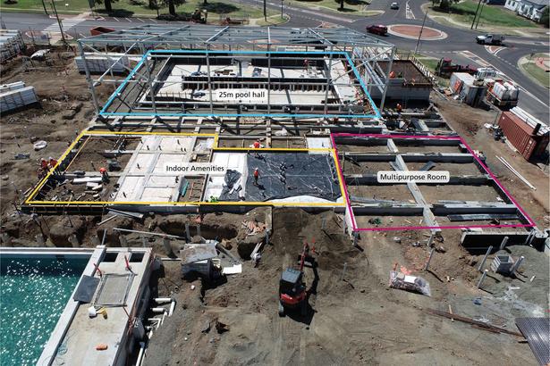 Continued construction of 50m pool plant room, grandstand and swim club facilities