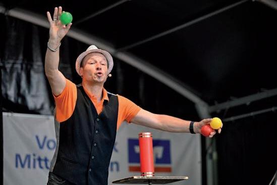 Zauberer Michael O. präsentiert ein buntes Zauberprogramm für die ganze Familie und eine Ballonshow. Die Besucherinnen und Besucher werden mit einbezogen.