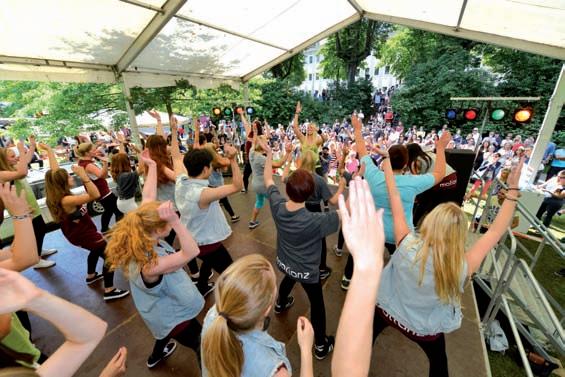 schauer zum Mittanzen. Die Tanzschule The Movement präsentiert unter anderem Hip-Hop, Heels und Contemporary. Die Jazz-und Modern-Dance-Formation Lichtblicke der TSG Marburg zeigt zwei Choreografien mit Boden-Akrobatik und Hebungen. Unter dem Motto „Dance and Workout – Kick and Punch – Bang your Head“ gibt’s außerdem ein Training für Fans von Hardrock und Metal-Musik. Nach seiner erfolgreichen Premiere im vergangenen Jahr führt Discobruder aka. DJ Holger Gerlach als Garant für gute Laune am Samstag und Sonntag am Lahnufer wieder durchs Bühnenprogramm. Auf der Drachenbootbühne werden auch die siegreichen Paddel-Teams gekürt und bejubelt. Im großen Biergarten vor der Bühne sammeln Athletinnen und Athleten und ausgepowerte Stadtfestgäste bei einem kühlen Blonden neue Kräfte. Die Musik spielt auf der Drachenbootbühne natürlich sowieso!