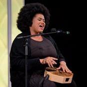Die Rebellin der Kindermusik und Gewinnerin des Musikautorenpreises der GEMA Suli Puschban, präsentiert Sonntagnachmittag zum Abschluss des Programms auf der Volksbank-Parkbühne um 16.30 Uhr mit ihrer Kapelle der guten