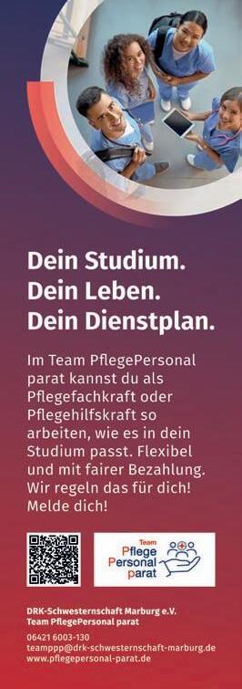 ● Individuelle Betreuung Wendepunkt e.V. in Marburg sucht neue Mitarbeiter*innen als Alltagsbegleiter*innen. Neben dem StundenGrundlohn in den ersten 6 Monaten in Höhe von 13,50 Euro brutto und danach in Höhe von 14,00 Euro brutto erhalten Sie Zuschläge für Sonnund Feiertagsarbeit und einen Tankgutschein. Ein eigener PKW ist zunächst während der Probezeit erforderlich. Nach Ablauf der Probezeit und einer nahezu Vollzeitstelle kann über einen Dienstwagen gesprochen werden. Haben Sie Interesse? Bitte schicken Sie Ihre Bewerbung an unsere email auf unserer Homepage. Individuelle Betreuung Wendepunkt e.V.
