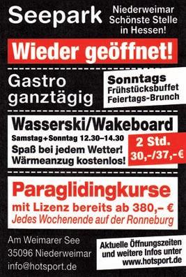 l Weiterbildung „Wildnispädagogik“. Start: 07.09.2023. Infos: www.natur-wildnisschule.de/ marburg. (gewerbl.)