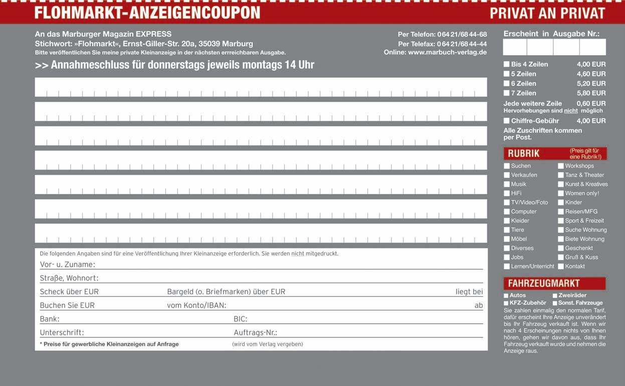 Marburger Magazin EXPRESS tatsächlich verbreitete Auflage 8.050/Erscheinung